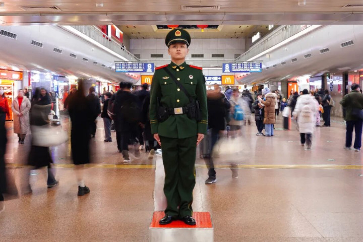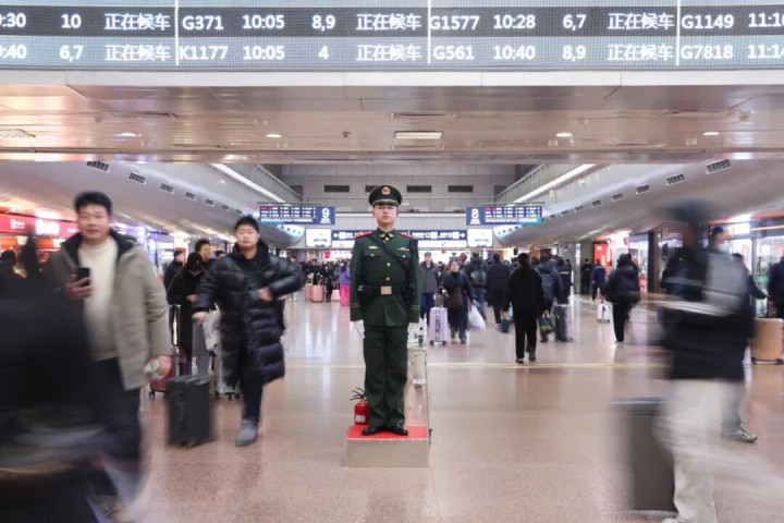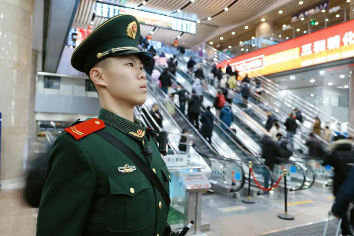 执勤官兵按照“定东说念主、定岗、定时、定责”的条目,在车站各重心部位实施全天候值守。他们在东说念主流量密集的进站口、安检区、候车大厅等要害点位加强巡逻管控,协助保管现场治安,同期密切不雅察客流动态,实时发现比肩斥安全隐患,为春运游客筑牢安全出行障蔽。