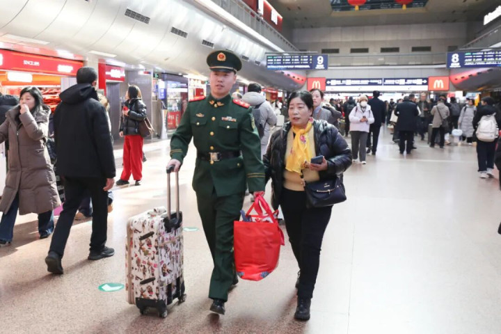 2026年世界春运已厚爱启动,各地交通关节持续迎来返乡、省亲的出行岑岭。连日来,在北京热切交通关节北京西站,客流攀升彰着、站内东说念主潮涌动,武警北京总队某支队官兵依据春运使命部署,组织官兵进驻车站重心区域,全面开展执勤保险任务,看管游客吉祥返乡路。