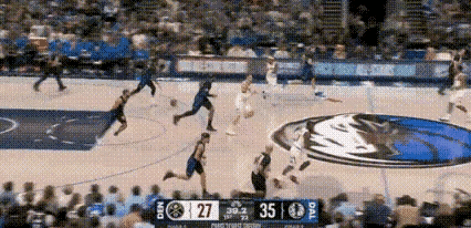 首节打到还剩 4 分多钟,独行侠已经打出 22:7,小高潮直接把掘金打懵。