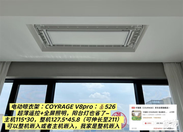 一又友推选的电动晾衣架,五百多的价钱比小米还低廉,作念了挑升的内凹镶嵌吊顶后,装配起来又不显眼又好用,升放慢即带个照明灯,说真的,这电动晾衣架有这些功能就够了,无须什么炎风烘干紫外线消毒等功能。