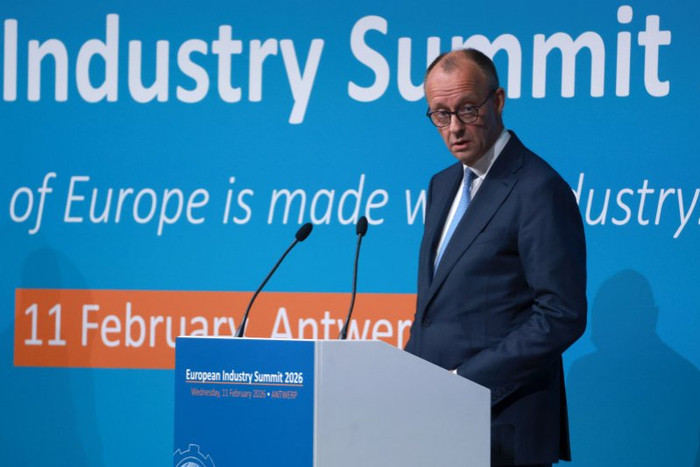 当地时候2026年2月11日,比利时安特卫普,德国总理默茨出席欧洲工业峰会。ICPhoto