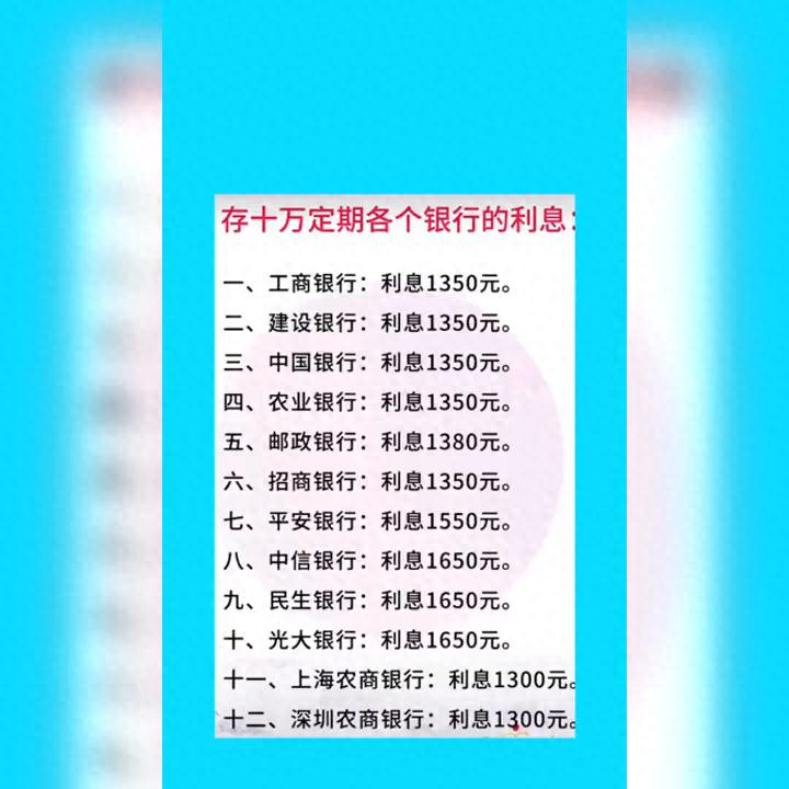 存十万定期各个银行的利息。