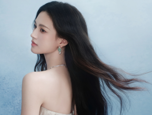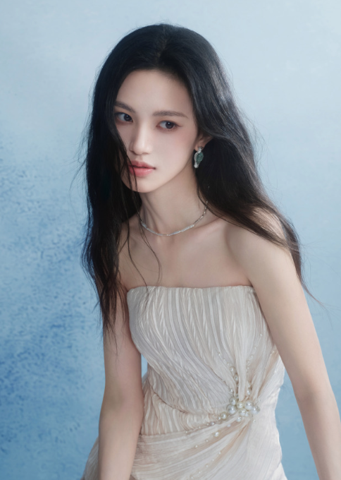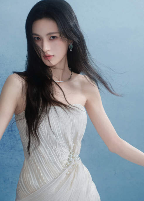 开云app在线体育官网 唐嫣浅蓝闪亮抹胸连衣裙, 优雅多姿