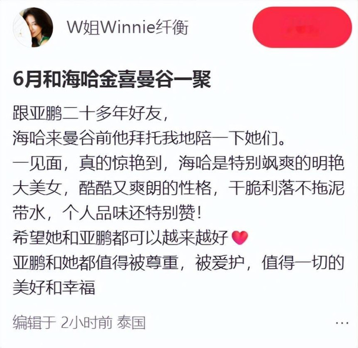 海哈金喜的支持,也让大家看到了她的格局。