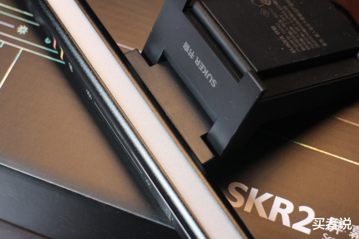 SKR2的包装接续了SKR1玄色搭配烫金字体的节约绸缪,黑金配色也增强了居品的科技属性。