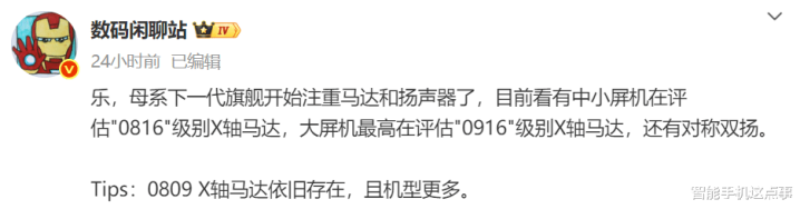 需要了解,0916马达的体积远大于0809,这意味着小米18 Pro/Ultra的内部堆叠难度极大。