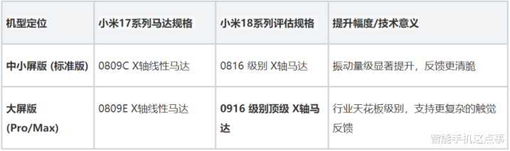 据博主透露,马达规格的提升是此次小米18系列最令人兴奋的改进之一,要知道小米17系列全系采用的是0809系列马达,虽然表现尚可,但在追求极致震感的发烧友眼中,仍有进步空间。
