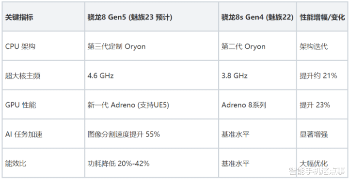 续航进化:虽然机身小巧,但得益于骁龙8 Gen5降低42%的功耗,魅族23的续航表现有望打破小屏手机的短板。