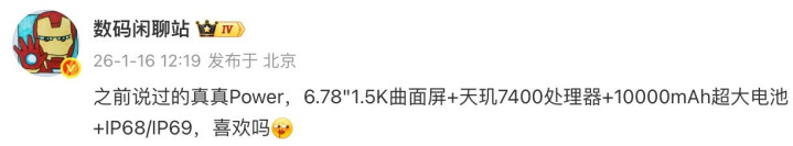 截至目前,暂时还没有看到真我官方提到这款机型,不确定会不会在国内市场上市。但是大电池依旧是目前手机行业的大方向,像荣耀WIN系列和Power2都已经搭载万级电池,近期的一加Turbo6、REDMITurbo5Max等机型也达到9字开头,感兴趣的朋友可以关注一下。