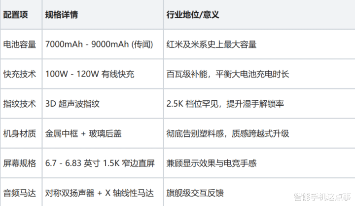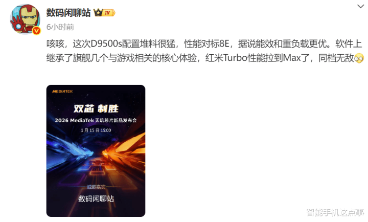 博主透露,虽然红米首发了天玑9500s,但后续其他厂商也会跟进,然而REDMI凭借供应链优势和开局即终局的饱和式堆料,已经抢占了 2026 年性能市场的先机。