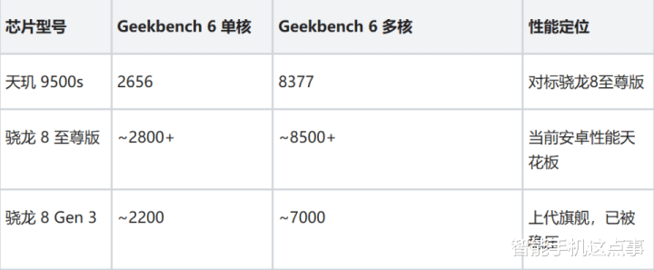 天玑9500s 核心规格参数表