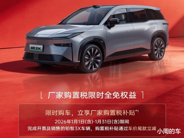 广汽丰田旗下的铂智3X在1月底之前兜底购置税;